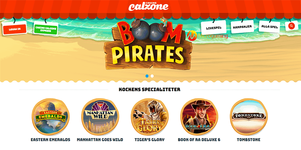Denna casinosida bjuder på något alldeles extra. Inte nog med att den har en kul layout med animeringar och välkomnande färger så har den ett spännande innehåll som vi har tittat på lite extra. Här bjuds det på massor av underhållande spel som klassiska slots, jackpotspel, bordsspel, live spel och myntspel. Casino Calzone har valt att kalla utvalda spel för kockens specialiteter. Lite kul och annorlunda tema som vi inte stött på hos något annat casino. Är du ny spelare behöver du öppna ett konto. Du loggar sedan in antingen via din e-post eller via bank ID. Superenkelt och smidigt. Välj mellan att logga in direkt och spela eller Calzone express för att först göra en insättning och sedan spela.